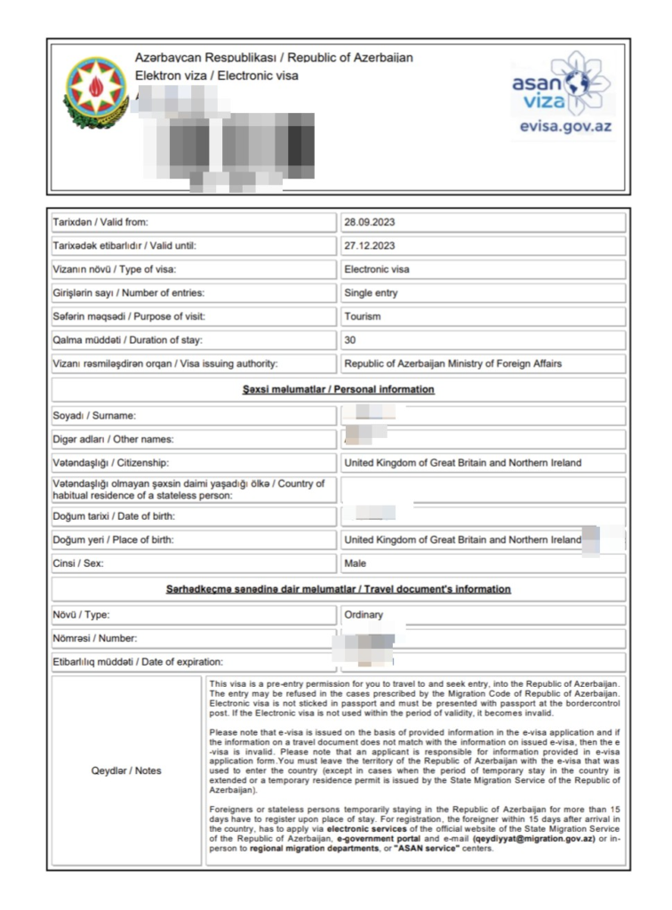 Every traveler, regardless of age, must have their own individual travel document. For minors (children under 18) traveling from Montenegro, a separate eVisa is required even if they are included in a parent’s passport. If a minor is traveling with only one parent or a legal guardian, it is highly recommended to carry a notarized consent letter in English to satisfy both Montenegrin and Azerbaijani immigration rules.