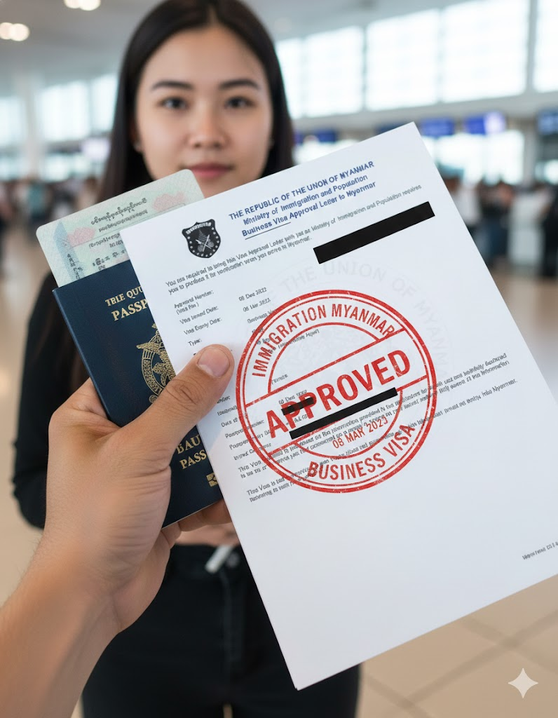 Your printed Myanmar Business eVisa Approval Letter (color print is preferred).