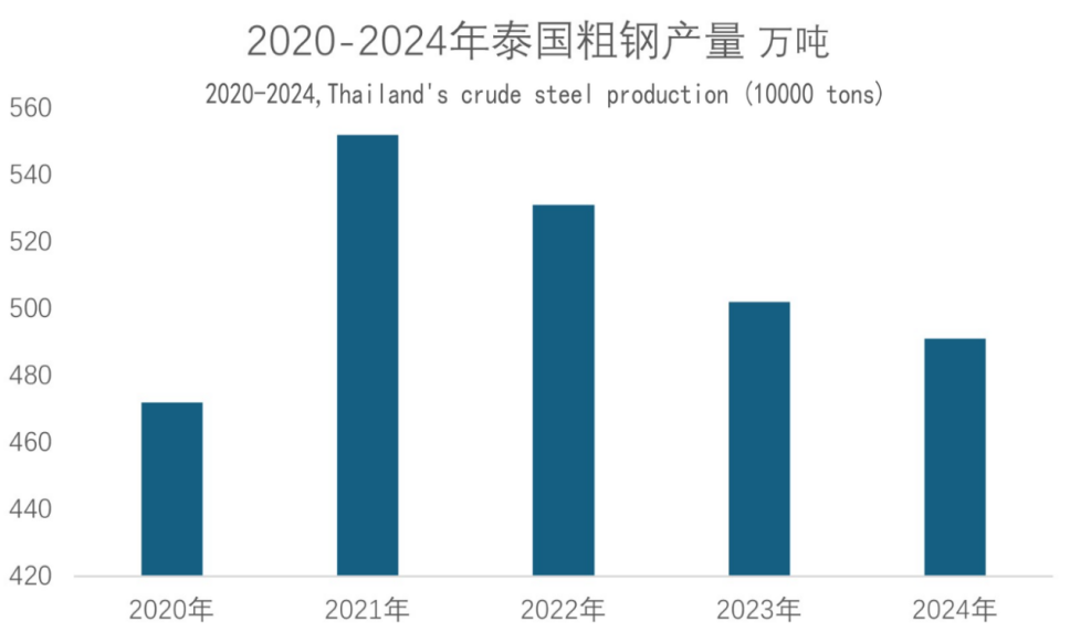 Thailand’s steel industry has been impacted by the entry of Chinese steel companies into the ASEAN market in the past decade, resulting in the continuous reduction of the production scale of local companies. In 2024, Thailand’s steel production capacity utilization rate will be only 29%, reflecting the severe situation of the industry.